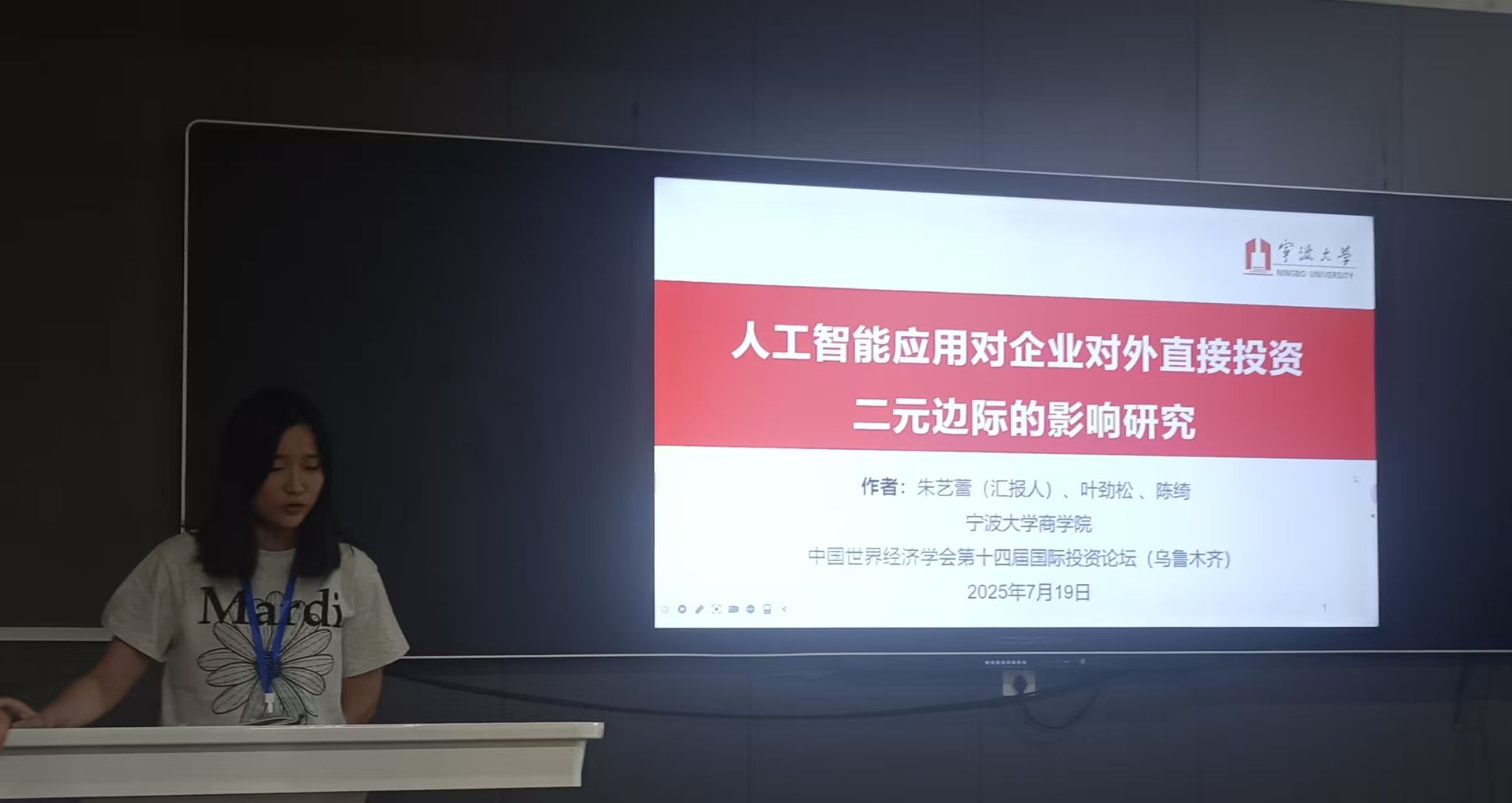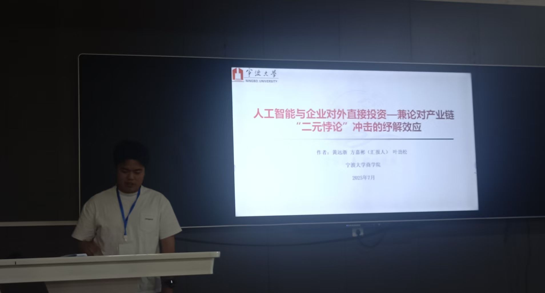 MIB学位点教师叶劲松和硕士生代表受邀参加了会议。分论坛上,2023级MIB朱艺蕾汇报了论文《人工智能应用对企业对外直接投资二元边际的影响研究》,2022级MIB方嘉彬汇报了论文《人工智能与企业对外直接投资——兼论对产业链“二元悖论”冲击的纾解效应》,专家学者们肯定了论文的规范性和实证的深入程度,并就故事表达和论文理论性给出了中肯的意见和建议。