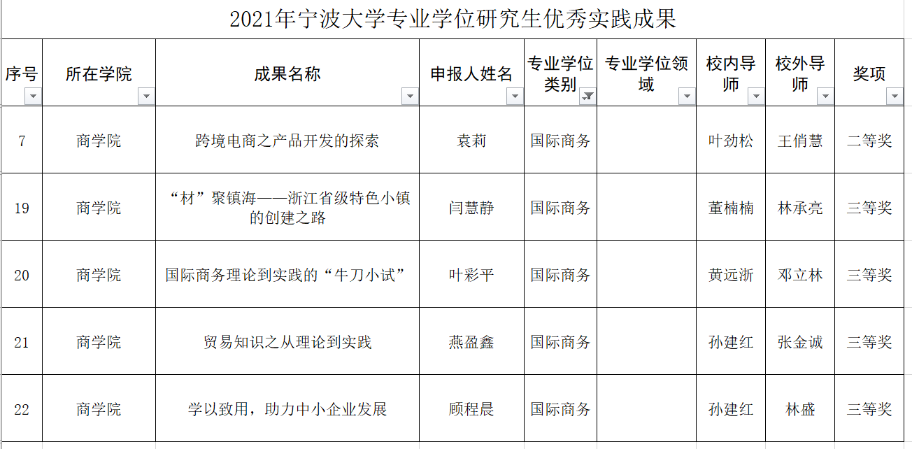 2018级国际商务专业袁莉等5位同学获评2021年51吃瓜网 专业学位研究生优秀实践成果奖