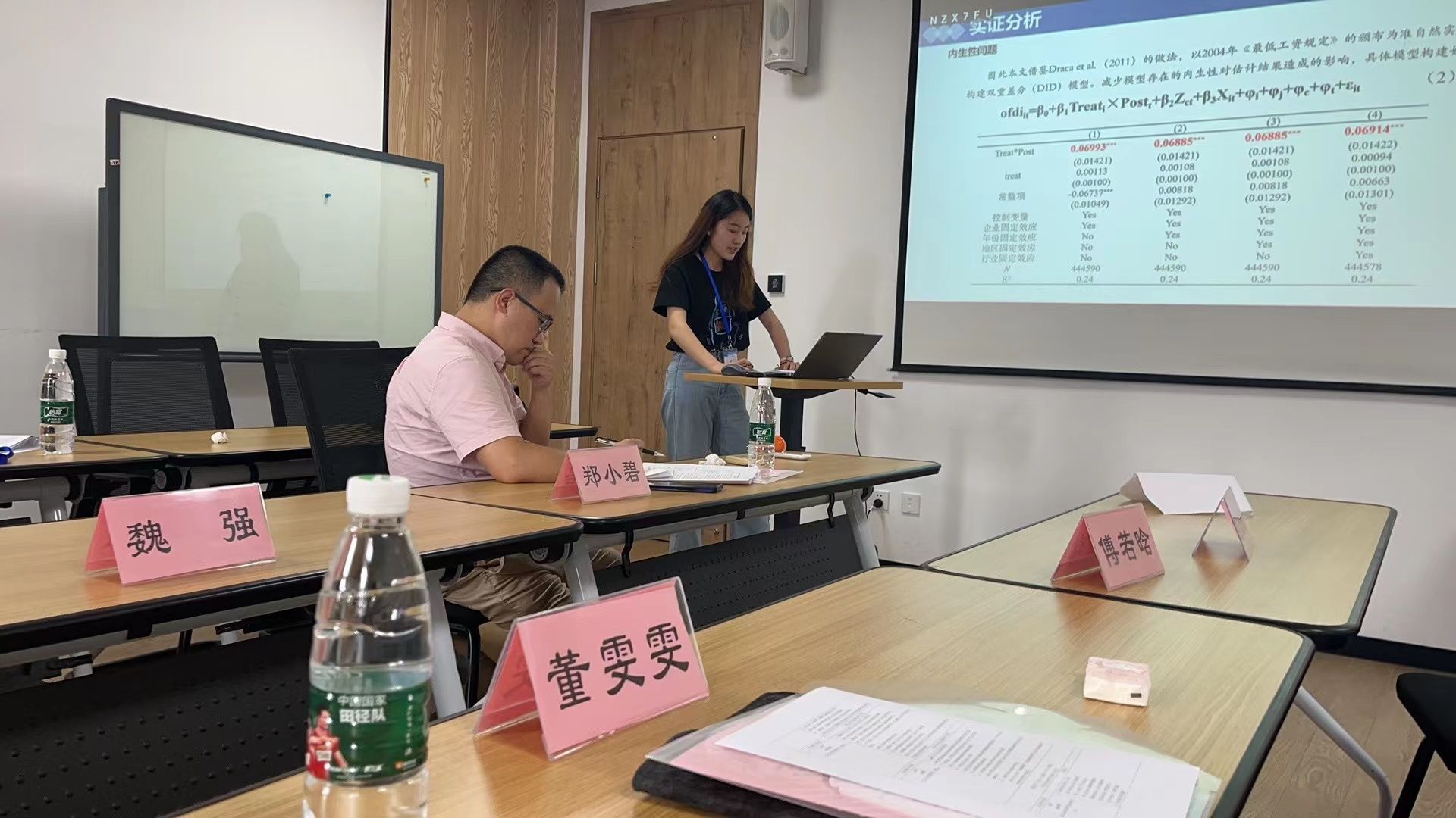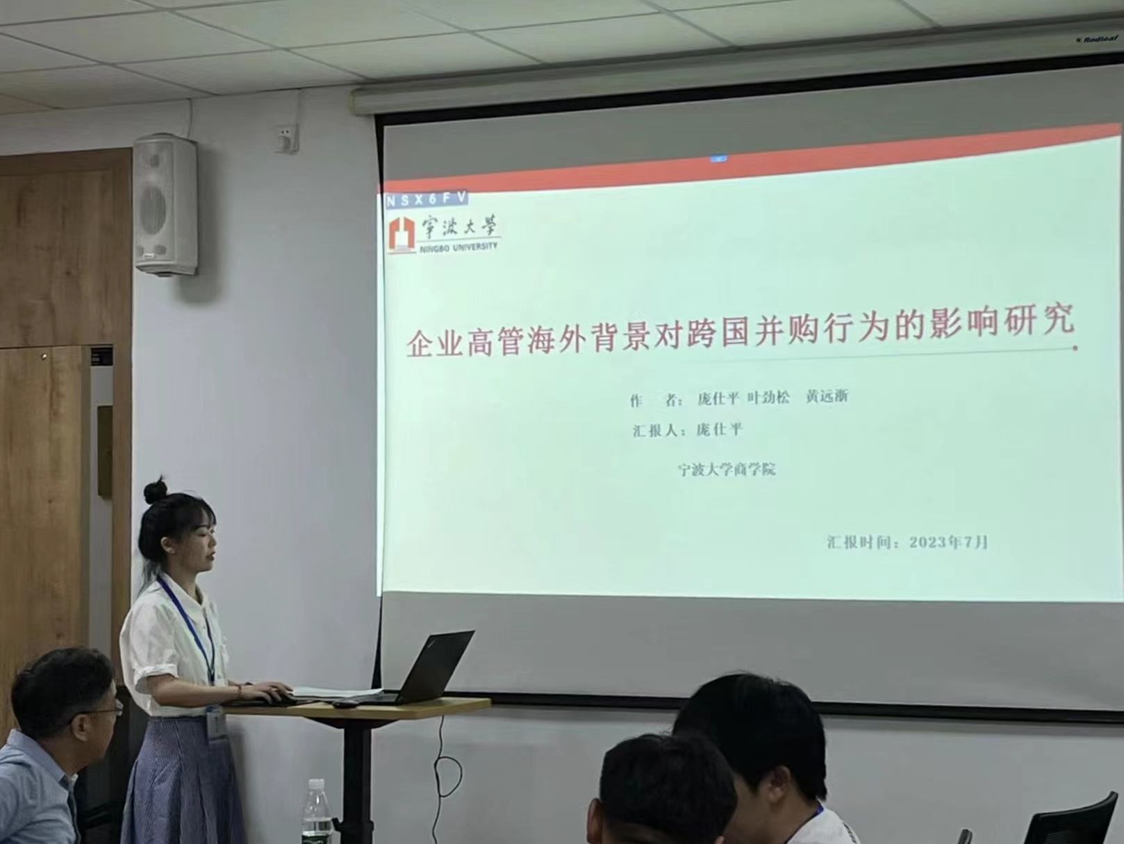 MIB专业2021级硕士生董雯雯汇报了论文《劳动力成本对跨国企业复投资的影响研究》、庞仕平汇报了论文《企业高管海外背景对跨国并购行为的影响研究》,2022级硕士生方嘉彬汇报了论文《地区间市场分割对外商直接投资进入的影响研究》、鲍子文汇报了论文《数字基础设施是否提升了出口产品质量》。