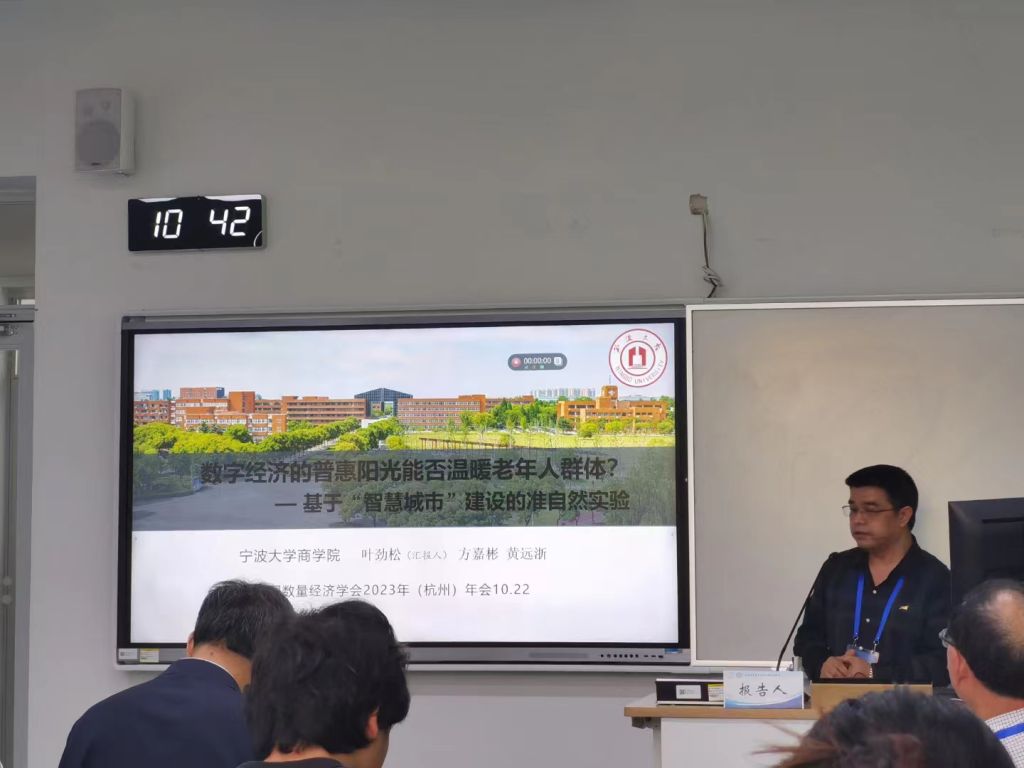 MIB学位点教师叶劲松与2022级研究生方嘉彬参加了本次年会,并在22日上午的“平行论坛16:数字经济与智能治理-Ⅲ”汇报了论文《数字经济的普惠阳光能否温暖老年人群体?》