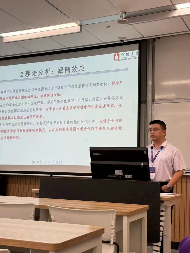 MIB学位点教师叶劲松参加了“中青年分论坛(三):国际贸易-供应链重构背景下的吸引外资与对外投资”,汇报了论文《国内梯度转移还是跨境转移?》