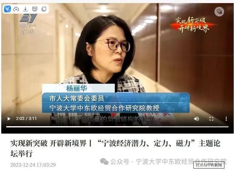 中东欧经贸合作研究院杨丽华教授参加会议,并接受宁波电视台新闻综合频道采访。