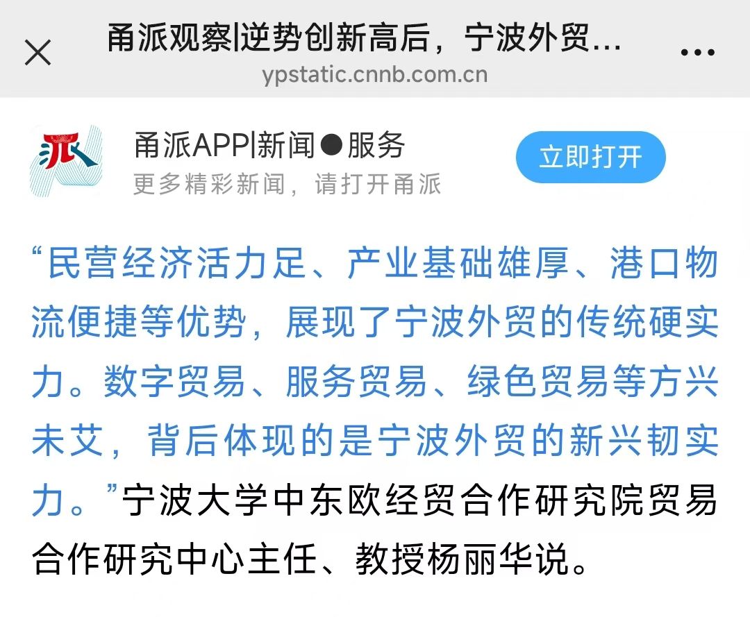 媒体发声 | 51吃瓜网 MIB学位点负责人杨丽华教授在甬派APP新闻平台为宁波外贸发展建言