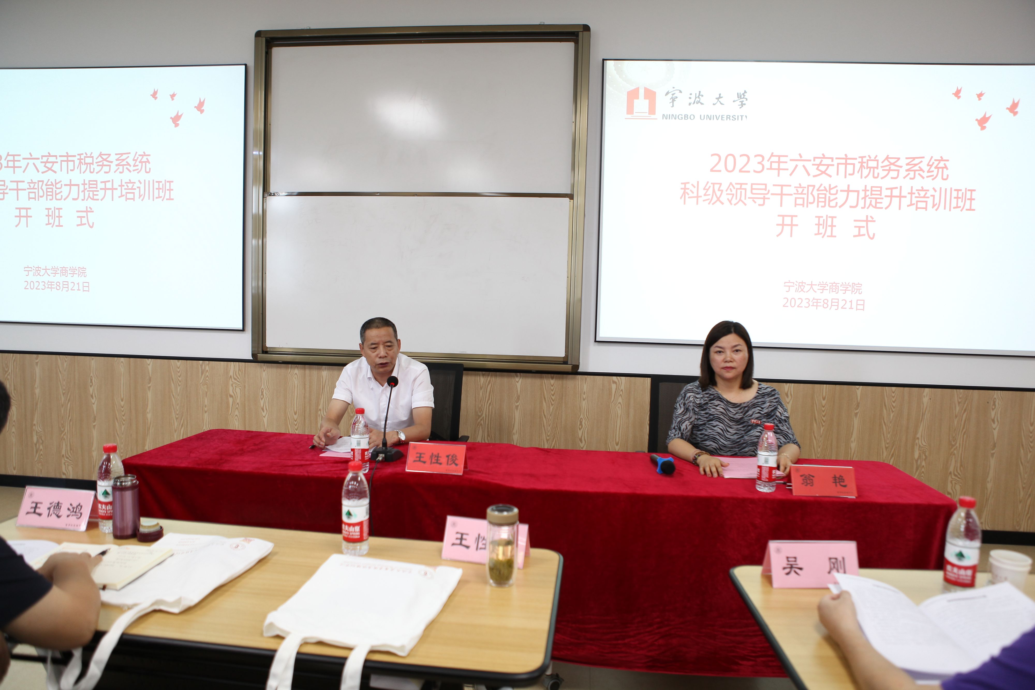 为此次培训班所做的服务与安排表示感谢,同时对学员提出四点要求:一要端正态度,珍惜机会,端正学习态度,认真学习,用心学习;二要学以致用,确保质量,从具体实践出发,补充自己的知识体系,实现理论与实践相结合,带动全市税务工作的提高;三要严守纪律,树好形象,严格遵守培训班纪律;培训班还成立了班委会,班委在培训过程中要做好管理服务工作;最后,他预祝本次培训班圆满成功。