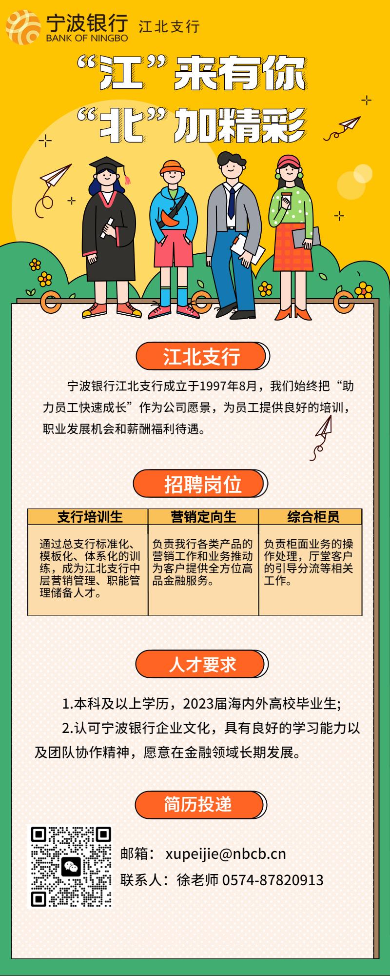 上一条:立信会计师事务所浙江分所 2023届校园招聘春招 下一条:“甬浦起帆 邀您来约”浦发银行宁波分行招聘简章
