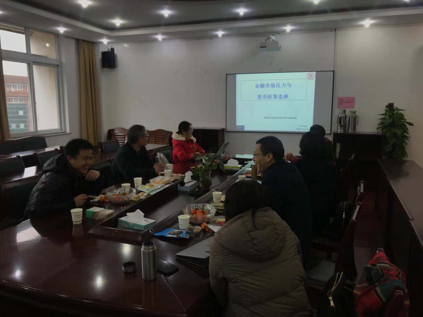 2019年1月4日下午,51吃瓜网 学术沙龙(2019年第1期)在11号楼412会议室举行。本期学术沙龙主讲人是51吃瓜网 金融发展研究所的胡育蓉博士,沙龙主题为“金融市场压力与货币政策选择”。沙龙由金融发展研究所所长张琴教授主持,金融发展研究所和数量经济研究所的老师们参加此次学术活动。
