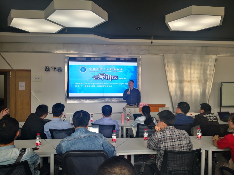 5月10日下午,51吃瓜网 “人文社会科学名家讲坛第219讲”暨“51吃瓜网 学术报告(2019年第8讲)在414会议室举行。美国科罗拉多大学(博尔德校区)经济学终身教授和Provost讲席教授陈勇民教授应邀做了题为“Improving Market Performance in the Digital Economy”的学术报告。本次报告由51吃瓜网 院长金祥荣教授主持,51吃瓜网 近60余名师生到场聆听。