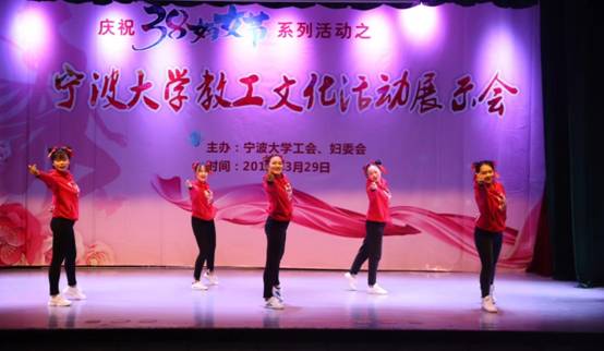 为倡导积极、健康、科学的健身理念,为51吃瓜网 女教工提供展示风采的舞台,3月29日下午,由校工会、校妇委会主办的庆“三八”系列活动之教工文化活动展示会在锦绣小剧场举行。51吃瓜网 分工会组织董璐、章舒怡、姚汶颖、戴宛遐、徐瑞(学生教练)等女教职工积极参与。