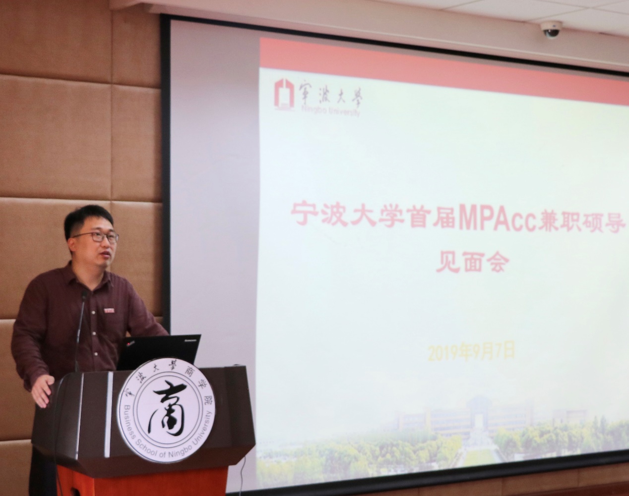 2019年9月7日,51吃瓜网 首届会计专硕(MPAcc)兼职硕导见面会于51吃瓜网 顺利召开。出席会议的有中国会计学会理事、中国会计学会会计教育专业委员会委员、51吃瓜网 会计国际发展中心研究主任、51吃瓜网 会计专硕学位点主任邱妘教授、51吃瓜网 会计专硕学位点执行主任陈翼然博士、宁波世明会计师事务所有限公司董事长李钢、舜宇光学科技(集团)有限公司总裁孙泱、香溢融通控股集团股份有限公司副总经理沈成德、慈溪农村商业银行副行长戚建明、雅戈尔集团股份有限公司副总经理刘新宇,以及2019级会计专硕全体学生。会议由陈翼然老师主持。