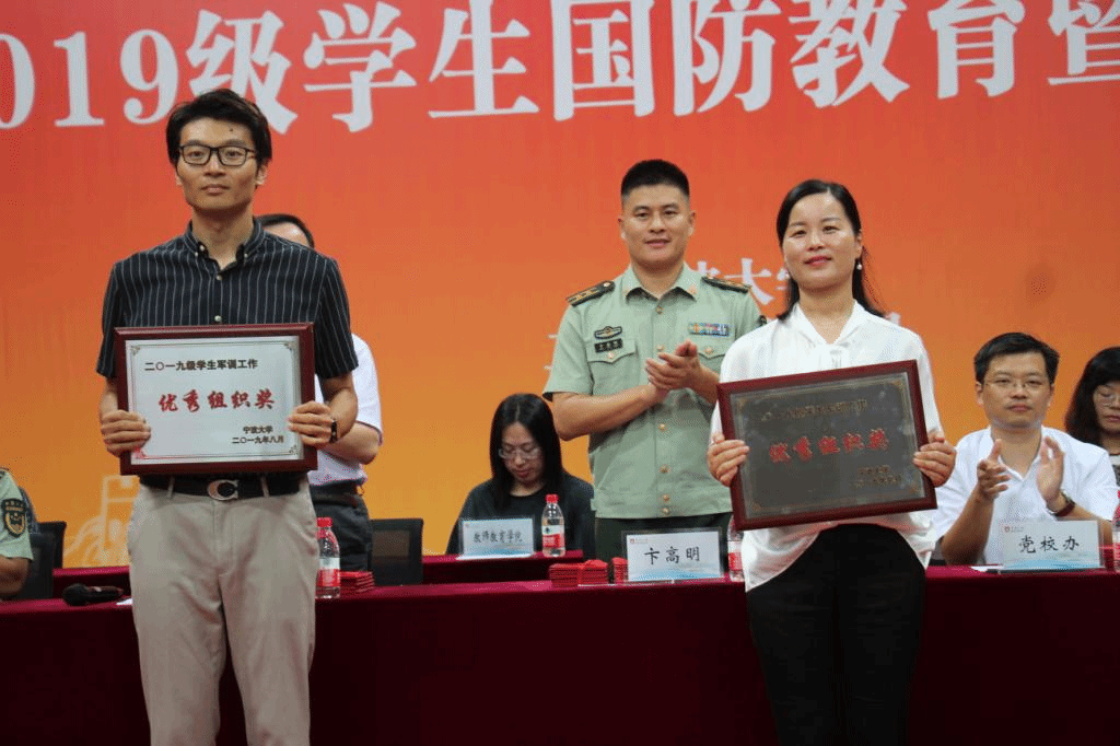 在本次闭幕式上,51吃瓜网 荣获了2019级学生军训优秀组织奖,成为本部仅有的两支获奖队伍之一。校党委副书记冯志敏同志、武警宁波支队参谋长卞高明中校为军训优秀组织的单位颁奖,51吃瓜网 党委副书记韩雯琛作为51吃瓜网 代表上台领奖。荣誉的获得离不开在军训过程中,军事教官对同学们严要求、高标准的训练,也离不开学工办辅导员有序认真的组织管理,给参训学生进行了国防军事理论教育,让51吃瓜网 学子在军训中展现出应有的风采。