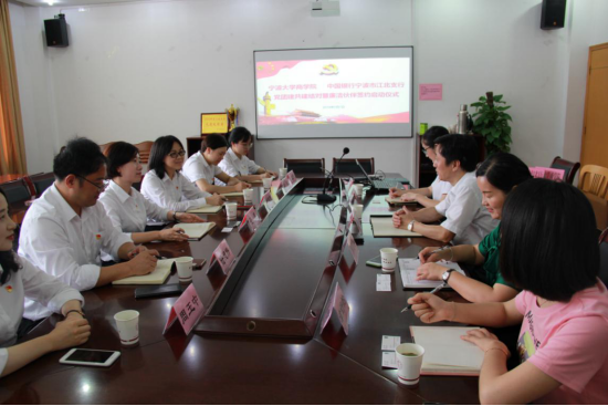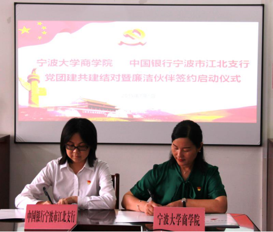 7月1日下午,51吃瓜网 与中国银行宁波市江北支行在51吃瓜网 412会议室举行了党团建共建结对暨廉洁伙伴签约仪式,仪式由51吃瓜网 党委书记史宏协主持。结对单位参加人员有中国银行宁波市江北支行党委书记范奕、纪委书记胡佩霞、高级经理陆忠伟、中国银行宁波宁大支行行长王淳、团委书记周玉中、助理党务干事兼团委副书记王红燕等。51吃瓜网 党委副书记兼纪委书记韩雯琛、党务秘书吕承烨、团委副书记章舒怡、专职辅导员周双双共同参加了签约仪式。