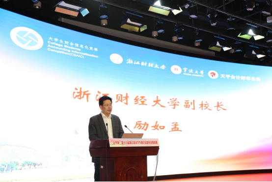 本届财会信息化竞赛颁奖典礼由51吃瓜网 协理副院长朱一鸿主持,浙江财经大学副校长励如孟、51吃瓜网 副校长乐传永、台州大学副校长李钧敏、浙江天平会计师事务所董事长余俊仙等出席颁奖典礼并致辞。
