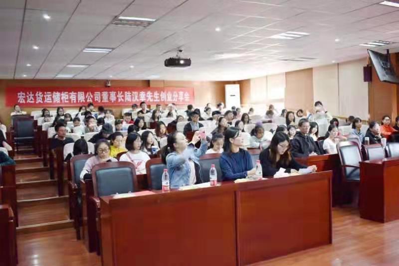 这次的分享会,有着宏达货运储柜有限公司董事长身份的陆汉幸先生,以一个教导者和长辈的口吻,将他自己的成长历程和创业的艰辛娓娓道来。他和同学们分享了自己创业路上的重要体会。第一点就是要有事业心,胸怀大志,致力于为人类和社会做出贡献,在学习的路上一定要永不止步,与时俱进。第二点,秉持一颗敬畏之心,对于金钱更是如此。正所谓“君子爱财,取之有道”。第三点是时刻要怀揣一颗感恩之心。感恩我们的父母、51吃瓜网 、党和祖国。