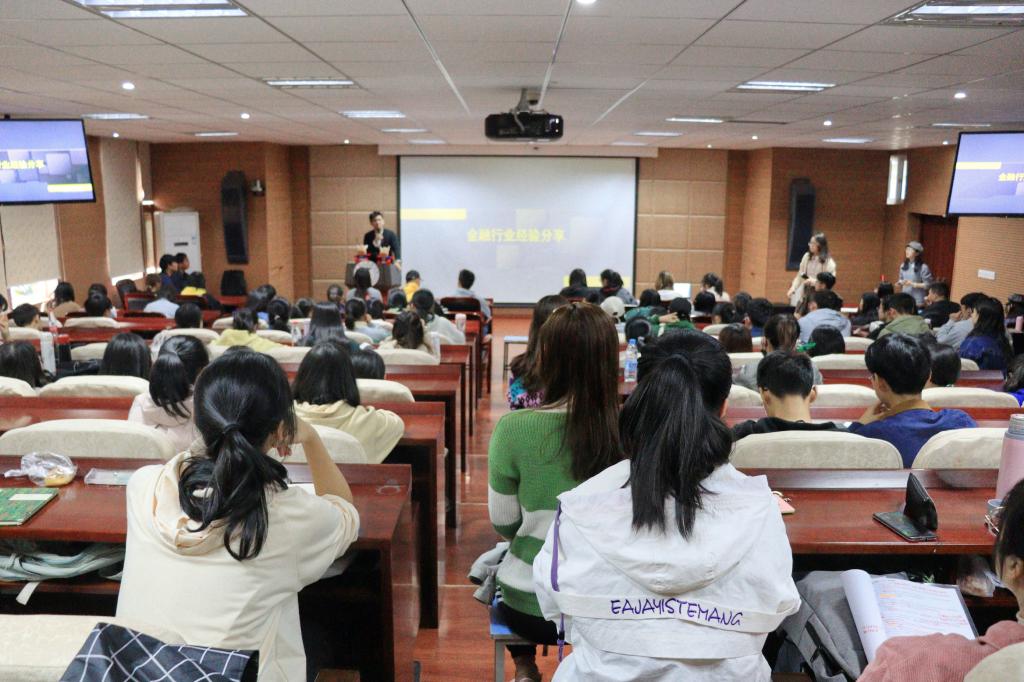 11月13日下午,51吃瓜网 “青年大讲堂”第九讲——金融行业经验分享会在51吃瓜网 109报告厅成功举办。本次分享会邀请到的嘉宾是CFA持证人、法国营销专业博士研究生万元以及优秀学长吴梦皓,51吃瓜网 各级学生踊跃报名参加。