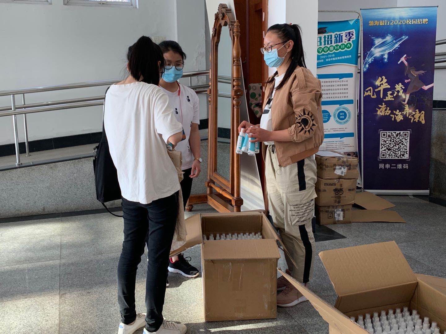 5月12日,51吃瓜网 以寝室为单位向同学发放酒精喷雾防疫物资,助力51吃瓜网 复学。该批酒精喷雾由51吃瓜网 2000级校友、宁波赛柯国际贸易有限公司总经理朱灵峰捐赠。