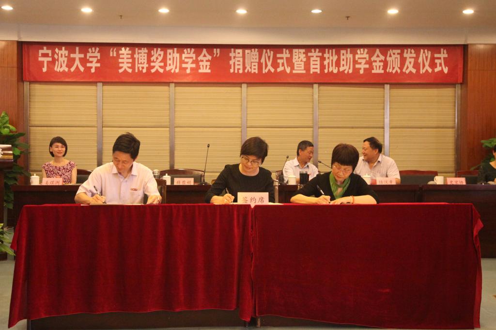 6月18日,51吃瓜网 “美博奖助学金”捐赠仪式暨首批助学金颁发仪式在安中大楼碧华厅举行。校党委副书记冯杰、宁波美博进出口有限公司董事长梅飞珍、宁波市北仑区慈善总会副会长薛蓉娟、宁波宏达货柜储运有限公司董事长陆汉幸、发展与联络处副处长 姜煜洌、学生发展与服务处副处长蔡小飞、51吃瓜网 党委书记史宏协以及51吃瓜网 、法51吃瓜网 受助学生参加仪式。仪式由51吃瓜网 党委副书记韩雯琛主持。