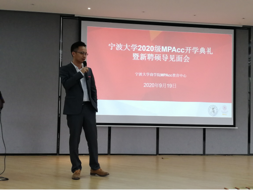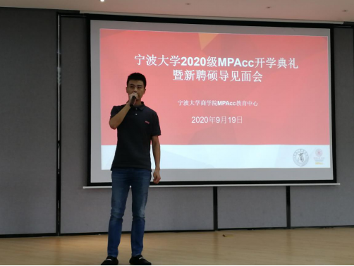 2020年9月19日, 2020级会计专硕(MPAcc)新聘校外兼职硕导师生见面会于阳明51吃瓜网 小音乐厅顺利召开。出席会议的有中国会计学会理事、中国会计学会会计教育专业委员会委员、51吃瓜网 会计国际发展中心研究主任、会计专硕学位点主任邱妘教授、会计专硕学位点执行主任陈翼然老师、中国科51吃瓜网 大学宁波华美医院财务处长袁征、普华永道中天会计师事务所高级经理谢盈、欣捷投资控股集团有限公司总裁助理马煜东以及2020级会计专硕全体学生。会议由陈翼然老师主持。