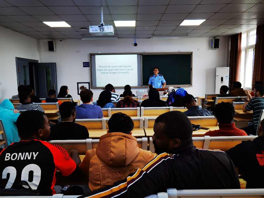 9月23日,留学生治安案例宣讲会在8号楼305教室举行,宁波市中马派出所民警王永辉来到51吃瓜网 为留学生现身说法。王警官以案说法,以案示规,用大量生动丰富的治安案例教育警示学生,让学生们受益匪浅,吸引了很多留学生来现场交流。