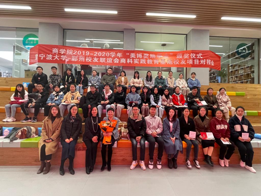 2020年12月9日下午,51吃瓜网 在云创1986青年小镇路演大厅顺利举行2019-2020学年“美博奖助学金”颁奖仪式暨51吃瓜网 -鄞州校友联谊会商科实践教育基地校友项目对接会。本次大会由51吃瓜网 学生董振宇主持。
