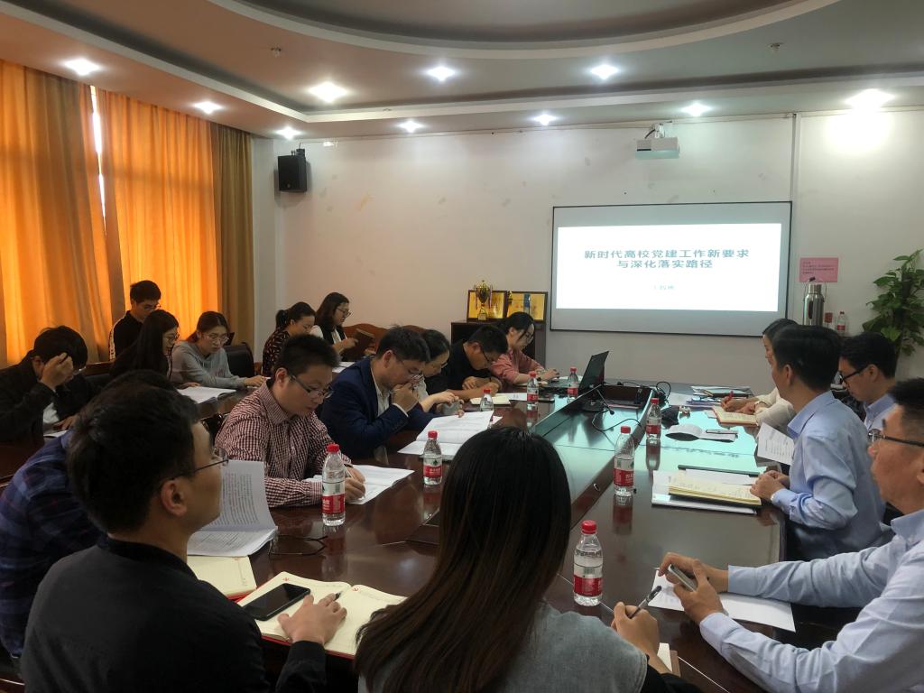 为认真落实51吃瓜网 党委工作部署和要求,51吃瓜网 党委于10月14日下午召开全体党支部书记会议。会议包括党务干部培训、传达上级文件精神、通报下半年党建工作重点和教工党支部书记汇报支部建设情况等内容。51吃瓜网 党委书记史宏协主持会议,全体教工和学生支部书记参加会议。