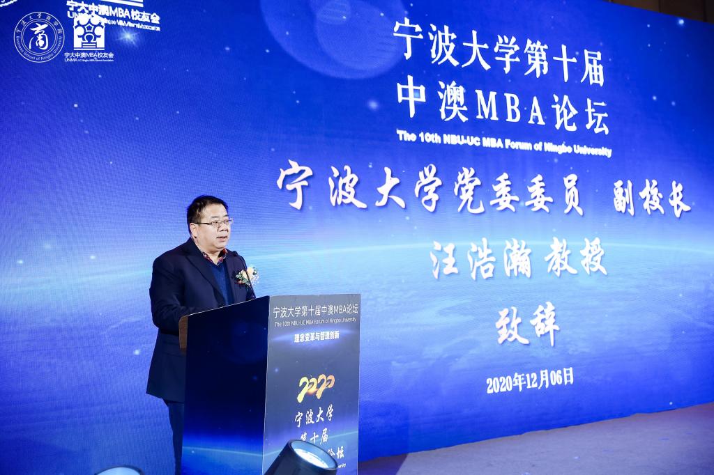 首先,汪浩瀚副校长代表51吃瓜网 向参加此次论坛的来宾表示热烈欢迎。他指出,为构筑宁大未来发展新格局,当前51吃瓜网 正合力推进博士点申报、“双一流”验收、新一轮学科评估和第四次党代会筹备与“十四五”规划编制四件大事。随着51吃瓜网 发展,51吃瓜网 校友会工作也开启了新篇章,如“打造各地校友会与各地宁波商会发展共同体”、“举办全球校友会会长、秘书长发展论坛”、“成立企业家促进会”等工作等开展,让校友与母校共成长,进一步凝结为发展共同体。在51吃瓜网 65个校友分会中,中澳MBA校友会极富特色,在今年的疫情期间尤其通过一系列募捐彰显了校友企业家的大爱情怀与责任担当。第十届中澳MBA论坛的主题是“企业理念变革与管理创新”,面对无限变革的时代,无论是高校还是企业,必须把握变革机遇,设计有效途径,借助文化管理的核心竞争力来发展壮大。