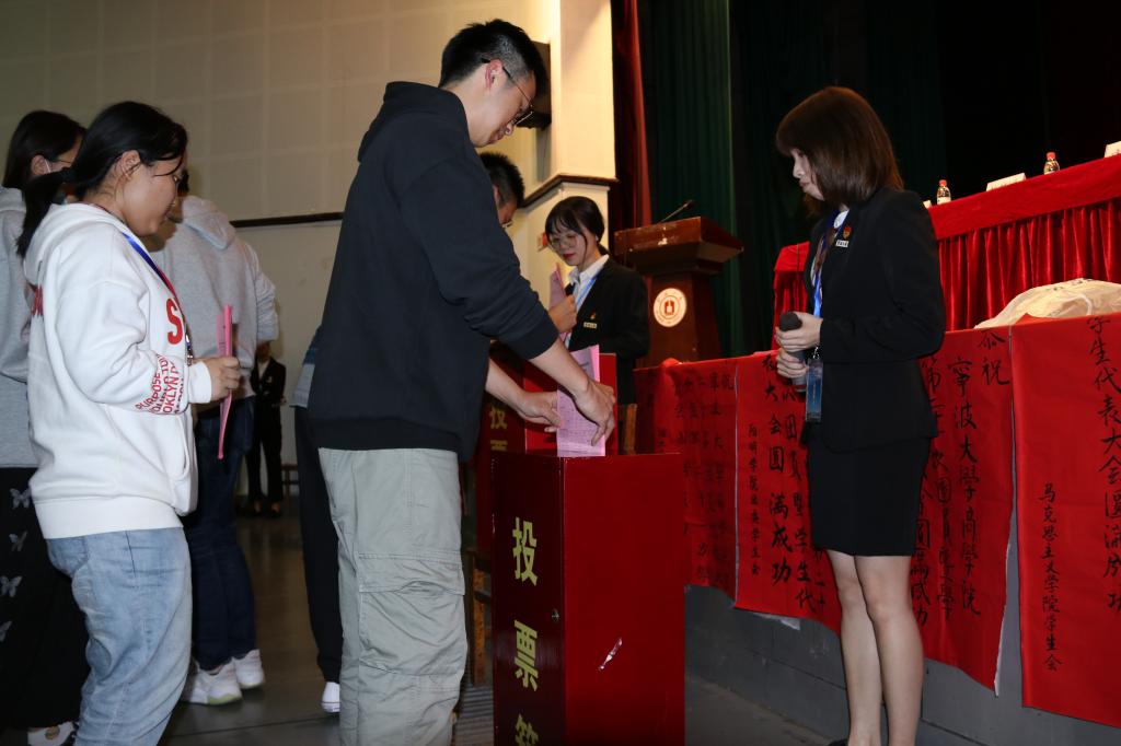 预备会议阶段,代表们审议通过了51吃瓜网 第二十届团员代表大会二次会议暨第二十一次学生代表大会筹备委员会工作报告、大会代表资格审查报告、大会主席团名单和正式会议议程。紧接着,在庄严的国歌声中本次大会正式拉开帷幕。会上,全体代表分别审议通过了51吃瓜网 第二十届学生委员会工作报告、51吃瓜网 学生委员会章程、51吃瓜网 第二十届团委及第二十一届学生委员会组织构成报告等九个报告。之后,47位委员候选人轮流上台发表了精彩纷呈的竞职演说,各位候选人通过各具特色而又真挚热烈的演讲词,表现出他们为51吃瓜网 服务与奉献的热情,赢得了台下的阵阵掌声和欢呼。最后,通过投票选举,产生了第二十届团委增补委员21名和学生会委员14名。在庄严的国际歌中,51吃瓜网 第二十届团员代表大会二次会议暨第二十一次学生代表大会顺利落下帷幕。