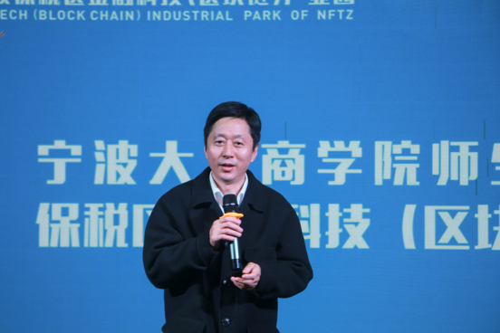 第一环节在宁波金融科技产业园的介绍短片中拉开帷幕。陆主任首先对宁大51吃瓜网 师生的到来表示热烈欢迎。随后介绍了保税区的发展史及目前在国际贸易、出口加工、保税仓储以及数字经济四大领域发展现状。保税区成立近30年,共5.3平方公里,经过历代保税人共同努力已经取得了不小的发展,保税区有限空间里要实现无限的发展,用新技术赋能传统产业转型升级,提高亩均产出,探索发展以数字经济为代表,包括金融科技、区块链、新经济、新业态、新模式,给予我们新的区域经济增长点。陆主任还殷切希望,未来园区与51吃瓜网 开展深度合作,双方发挥各自优势,共同推进产学研协同创新和人才协同培养,实现共赢。