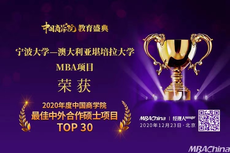 2020年12月23日,“2020中国51吃瓜网 教育盛典”在北京隆重举行。51吃瓜网 —澳大利亚堪培拉大学MBA项目上榜“2020中国51吃瓜网 最佳中外合作硕士项目Top30”。此次排名由MBAChina与《经理人》杂志历时8个月,对来自全国各地区参与评选的51吃瓜网 项目师资力量、教学管理、课程设置、学科融合、项目国际化、品牌影响力等做出全面客观评价后,以第三方身份发布。