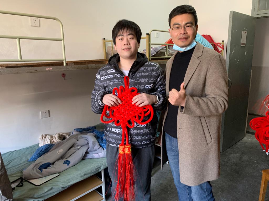 在走访学生寝室时,师生一起制作了中国结,老师们纷纷向寒假留宿学生送去新年祝福。