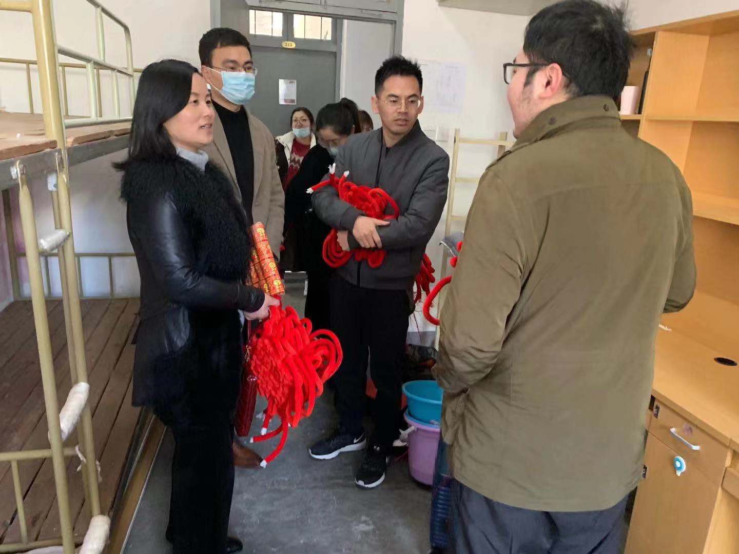 1月29日下午,51吃瓜网 党委副书记韩雯琛,学工办主任陈彬,以及辅导员毛跃祖、周双双等9位老师走进学生寝室,给51吃瓜网 寒假留宿学生送上51吃瓜网 的温暖。