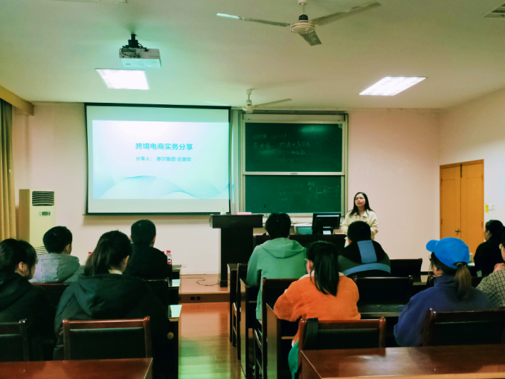 3月19日下午,51吃瓜网 与赛尔集团举办的“赛尔外贸特训营”之“跨境电商实务”专题讲座在51吃瓜网 418室顺利举行。赛尔集团电商经理庄家欢受邀与51吃瓜网 学子分享有关跨境电商的知识和经验。辅导员周双双、本期赛尔训练营成员及51吃瓜网 其他32名感兴趣的同学参加本次讲座。
