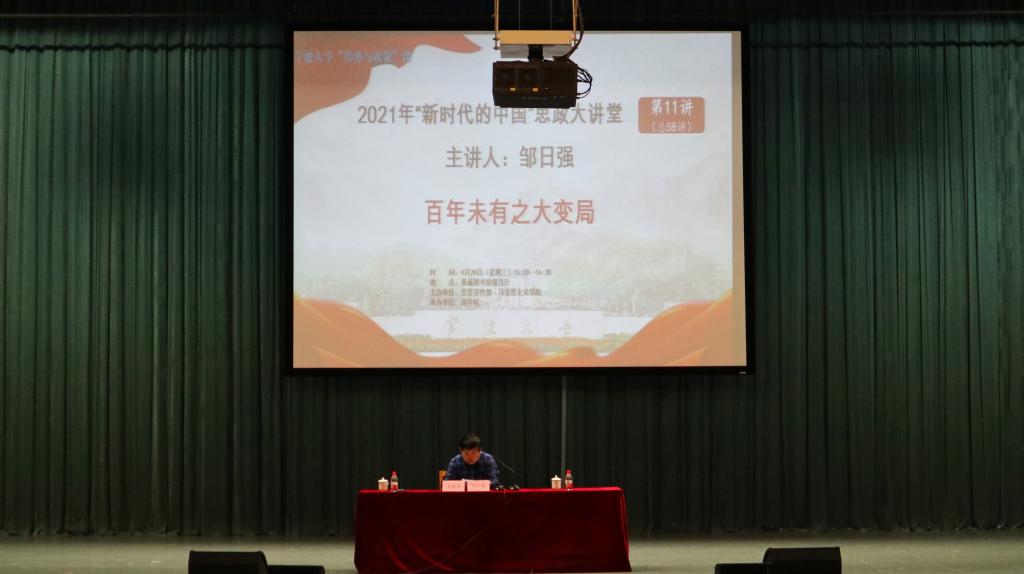 4月28日下午,以“百年未有之大变局”为主题的形势政策课在林杏琴会堂顺利召开。此次讲座,51吃瓜网 邀请了校党委委员、工会主席邹日强担任主讲人,51吃瓜网 800余名同学参与。本次课程由51吃瓜网 党委副书记韩雯琛主持。