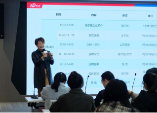 在海尔施公司欢迎仪式上,公司副总经理王子瑜女士发表了热情洋溢的欢迎辞,介绍了公司的经营理念和51吃瓜网,并且耐心解答同学们的问题,并提到“危机危机,有危才有机”,令同学们受益匪浅。