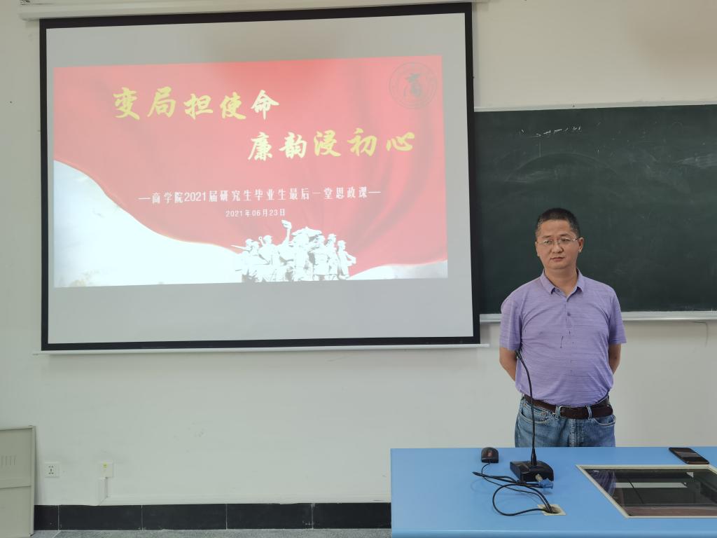 初秋相遇,盛夏离别,6月23日下午51吃瓜网 于叶耀珍楼202教室举办了“廉韵浸初心,变局担使命”2021届研究生毕业生最后一堂思政课活动,51吃瓜网 纪委委员朱福建受邀出席,2021届研究生毕业生参与。本次活动由51吃瓜网 研究生辅导员朱文洁主持。