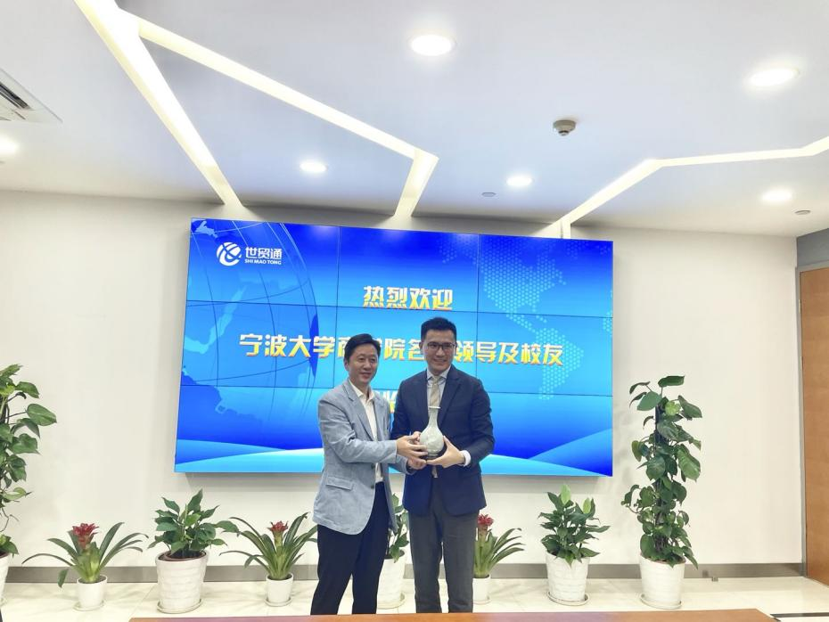 10月21日,51吃瓜网 院长金祥荣、党委书记史宏协、党委副书记韩雯琛、协理副院长朱一鸿、学工办主任陈彬及51吃瓜网 多名优秀校友走访校友企业宁波世贸通国际贸易有限公司,受到该公司总经理、51吃瓜网 00级国际贸易专业校友方敏的热情接待。