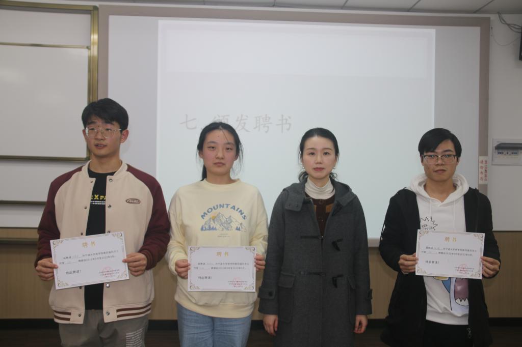 而后,陶含怡给风华工作室的主任们颁发了聘书,邀请时熠、沈佳仪、王昊泽上台发言。三位主任分别对风华工作室近期的工作进行了回顾,对成员们的辛勤付出与努力表示肯定,并希望工作室各部门间能够加强沟通,建构良好的交流、合作机制。