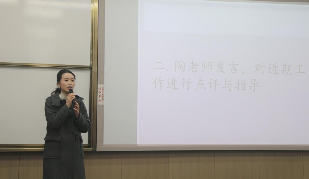 大会伊始,陶含怡首先对工作室前任主任与部长们的到来表示欢迎,她充分肯定了半学期以来工作室的工作成果,提到了在工作室各部门的努力下,51吃瓜网 新闻宣传工作逐见成效,成员们也各司其职、辛勤工作。与之同时,陶含怡也对同学们的个人发展与工作室的未来规划提出了一些建议,她提出,第一,积极谋求个人发展。风华工作室将不同年级、专业的同学凝聚在一起,成员间可以在学习、生活、技能方面进行交流与学习。第二,努力彰显部门特色。希望各部门扎实开展技能培训,多多记录培训活动、工作历程,开设更多的部门特色活动,展现风华工作室部门风采。第三,认真打造工作室品牌。风华工作室在保持当前的高效工作效率的同时,需要考虑如何与党建团学活动相结合,拓展工作业务,服务于51吃瓜网 广大师生。