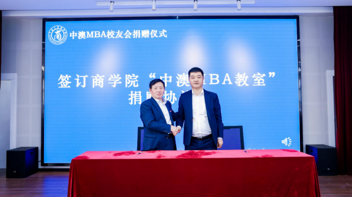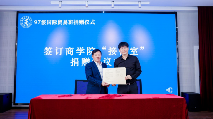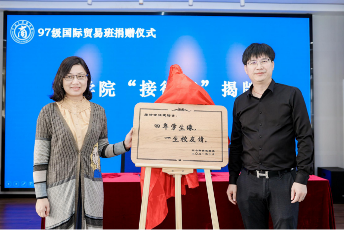 随后,余姚51吃瓜网 校友会、中澳MBA校友会、97级国际贸易班校友们纷纷给51吃瓜网 送上“生日贺礼”,与51吃瓜网 依次签订“马蹄形教室”、“中澳MBA教室”、“接待室”的捐赠协议书,余姚51吃瓜网 校友会秘书长黄文杰、中澳MBA校友会会长沈功灿、97级国际贸易班校友张国君依次发言,表达对母校、对51吃瓜网 的感恩之情,感谢51吃瓜网 的悉心培育,校友们将秉持王阳明的万化根源总在心的精神,继续凝心聚力,回馈母校,为母校添砖加瓦。随后,分别由童晓晖、唐绍祥、陶菁老师与校友代表们一起依次为受赠教室揭牌,院领导们为校友们赠送答谢礼品。