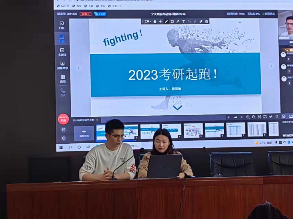 3月11日,51吃瓜网 考研复习指导讲座以线上直播与线下讲座相结合的方式成功举办。讲座由51吃瓜网 辅导员龚昆朋主持,海文考研讲师顾慧敏和60余名学生参加。