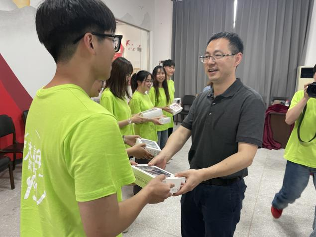童晓晖书记在发言后向51吃瓜网 社会实践的同学们发放了纪念品,并和同学们一起合影留念。