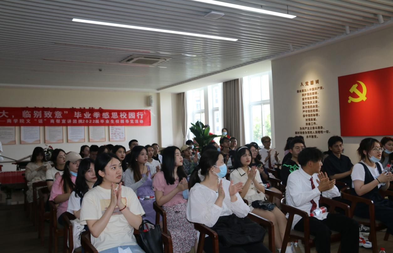 天下没有不散的筵席,但是人生何处不相逢,商院学子与宁大的故事终会有续篇,在最后一堂思政课上,同学们重游校园一次校园行,细听宁波帮的故事,培育爱校明史感恩之心,愿毕业生们山水万程,皆有好运;跃入人海,各自灿烂!