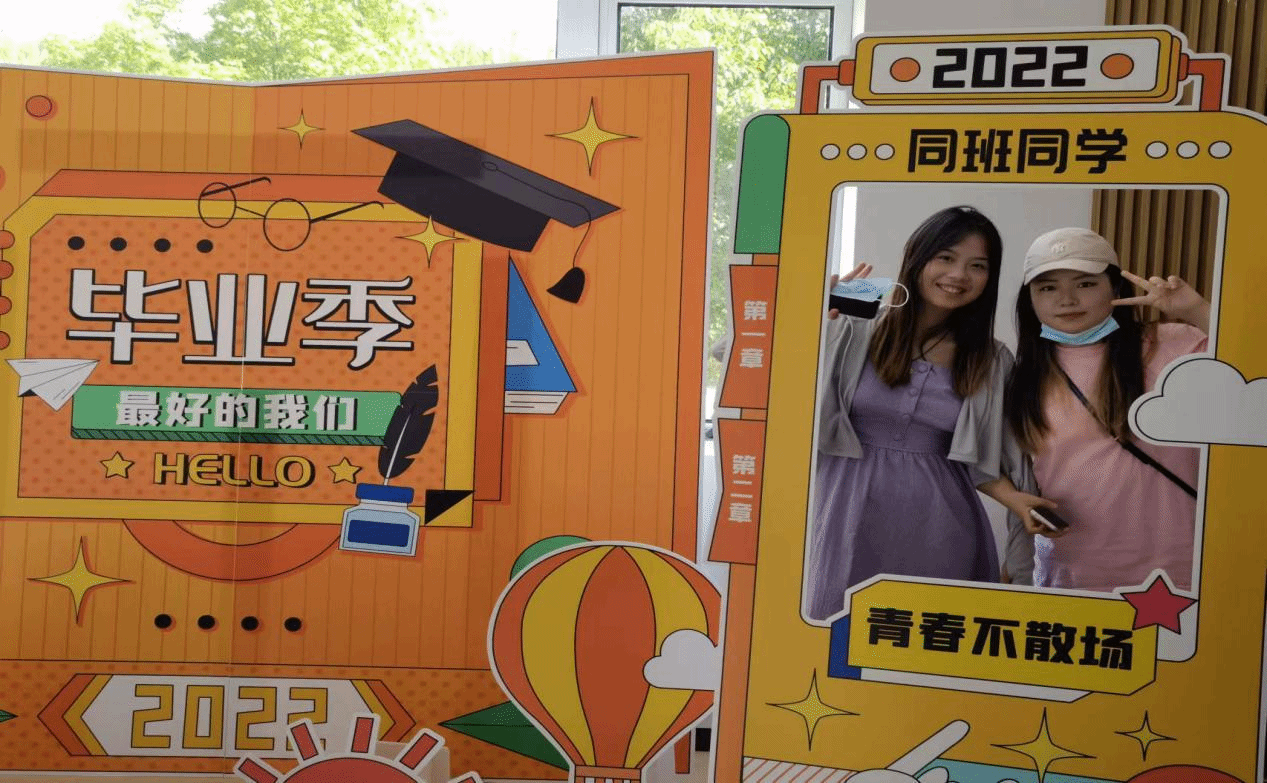 在路途中,毕业生们具有感染力的笑容深深打动着学弟学妹们。照相机的快门记录下毕业生们的最美笑容,来纪念这过去四年的大学生活。