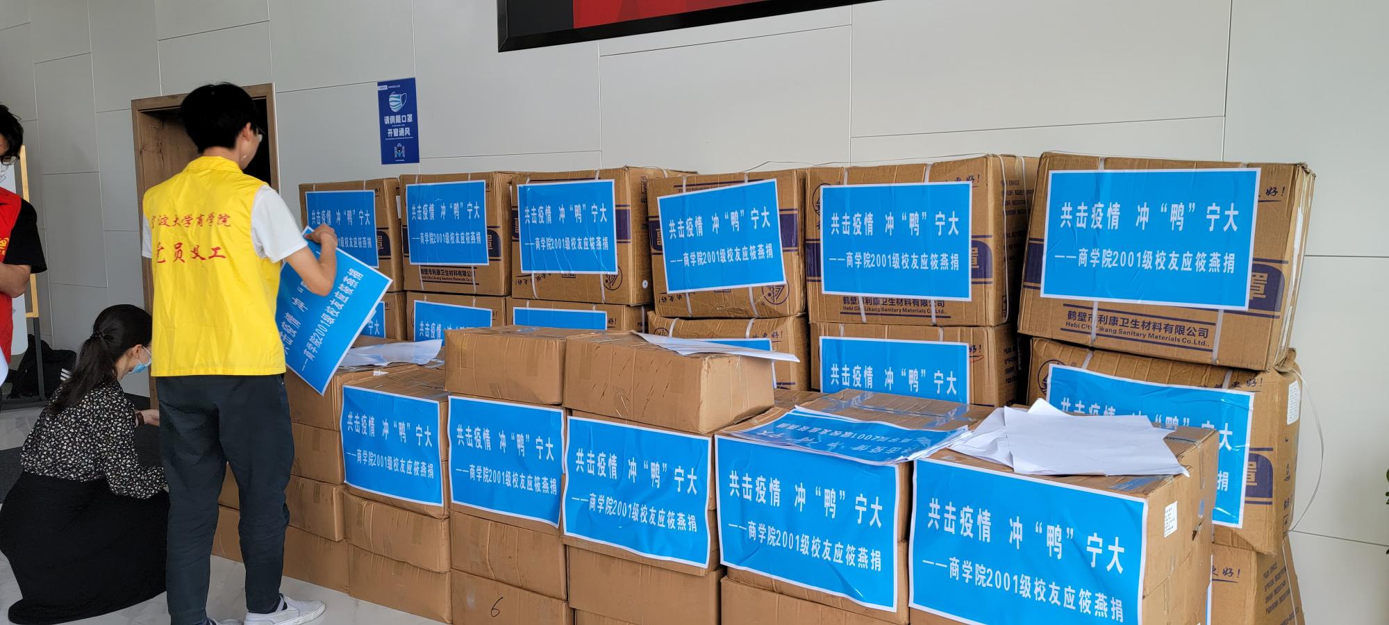 据悉,自毕业后,应筱燕校友一直关注宁大发展,得知母校也受疫情影响而进行封闭式管理时,当即着手准备向母校捐赠物资。当我们问及为何选择捐赠板鸭时,他说:“希望宁大师生在疫情防控期间保持积极健康的精神状态,常怀必胜的信心,在这场疫情防控战中冲‘鸭’!”