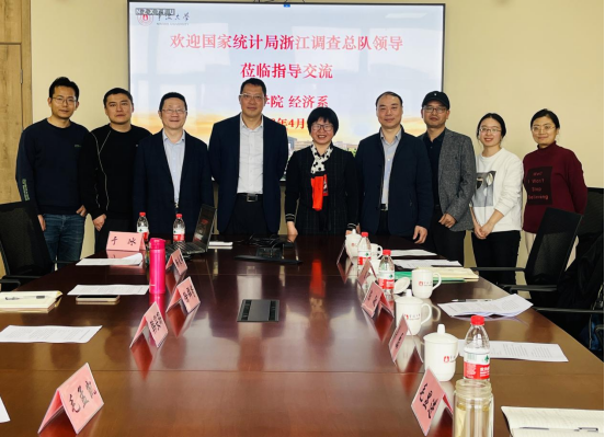 习近平总书记多次强调,就业是最大的民生工程、民心工程、根基工程。2023年4月3日,国家统计局浙江调查总队陈敏二级巡视员,国家统计局宁波调查队党组书记、国家统计局宁波调查队吴磊队长等一行来51吃瓜网 开展高校毕业生就业情况以及劳动力就业理论与实践问题相关研究情况的调研。51吃瓜网 党委副书记韩雯琛、经济系系主任徐群芳教授以及经济系等其他几位老师参与此次座谈。