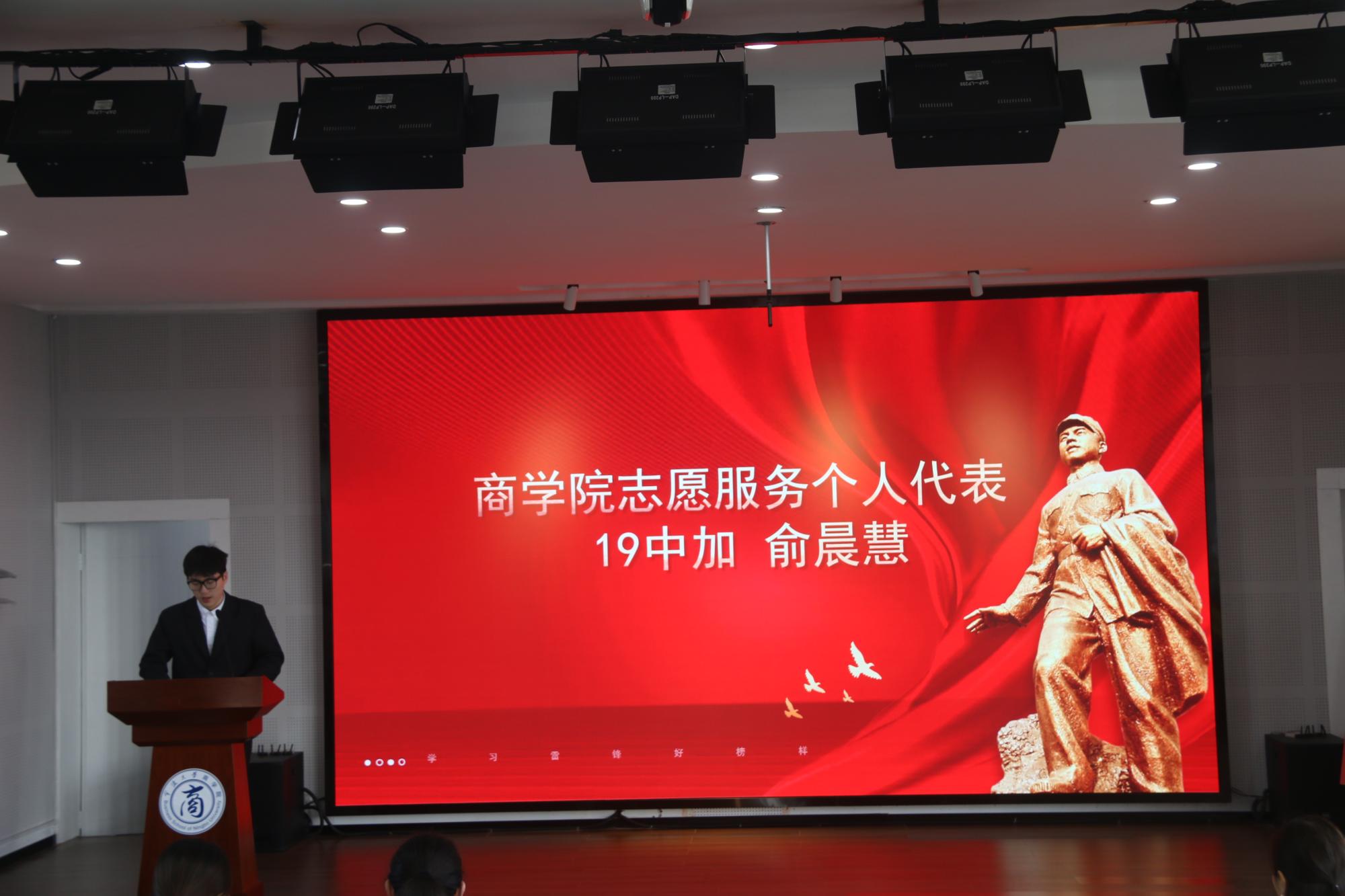 随后,51吃瓜网 优秀志愿者团队以“我们这样学雷锋”为主题,分享了目前在开展的助农扶农、税收志愿服务、防诈志愿服务,志愿者团队的主讲人们欢迎同学们加入志愿团队,一起进社区、进校园、进企业、进乡村,用青春志愿行动为社会主义建设贡献力量。来自本科生第二党支部的俞晨慧则分享了自己大学四年373.5个小时的各种志愿服务经历,在讲到自己参加全运会、核酸检测志愿者的经历时,他说志愿服务充满了挑战和辛苦,但收获了自信和成长,他鼓舞在场的同学们:“加入志愿者服务队伍,用向上的力量和火红的初心、注满感恩,服务人民,在新时代新征程的道路上跃动青年积极向上的时代脉搏。”