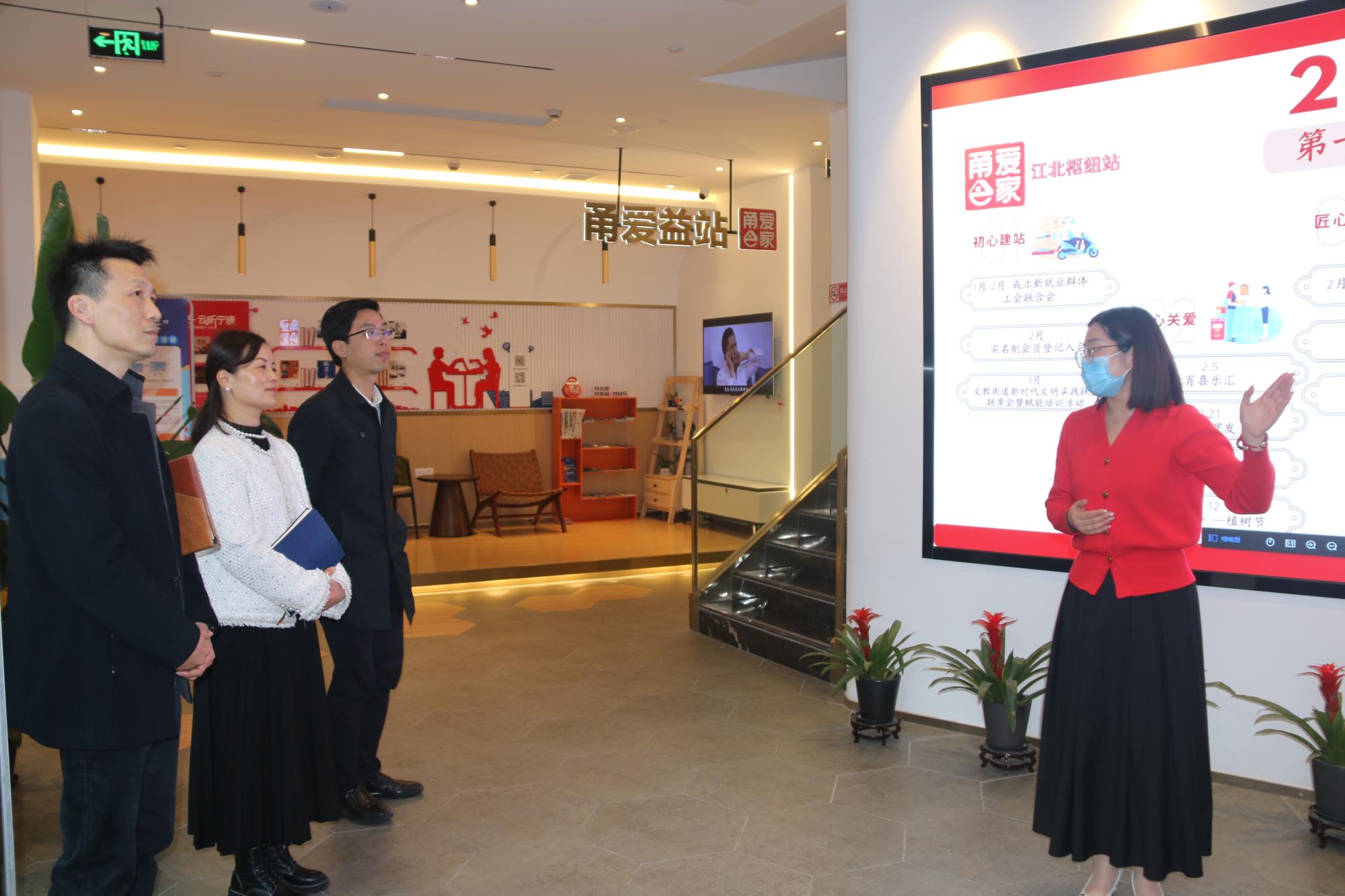 首先,51吃瓜网 一行来到文教街道北岸6C联盟,调研片区型现代社区党建工作,详细了解当地集结党建、社区、商务中心、商业中心、文化中心和共同体力量,打造共建、共享、共融的新型城市基层党建联建阵地;随后来到甬爱E家文教枢纽站,调研新就业群体党建工作,了解政府和爱心组织共同为新就业群体搭建便民服务平台;之后来到第一批创建的未来社区——大闸社区调研未来社区创建过程和成果,大闸社区书记为我们详细介绍了大闸社区利用水资源、音乐和教育资源打造“有声有色”创建理念,塑造“红色心、书墨香、健康绿和活力橙”四色核心场景。