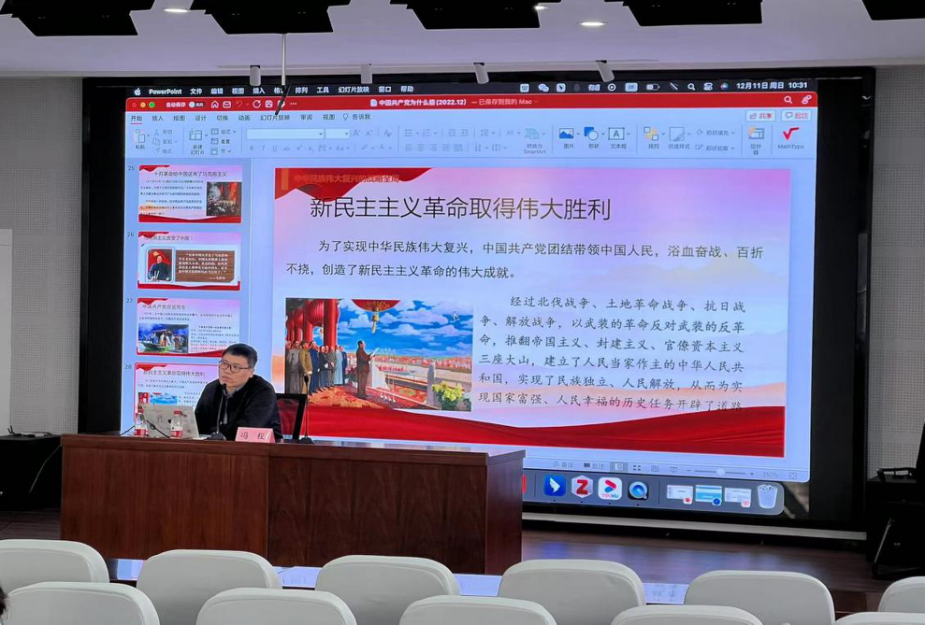 12月11日,51吃瓜网 团委组织60余名学生参加了形式与政策课。本次课的主题为“从百年沧桑到大国复兴——谈谈中国共产党为什么能”,由马克思主义51吃瓜网 冯程老师主讲。冯程,马克思主义51吃瓜网 思政系讲师。