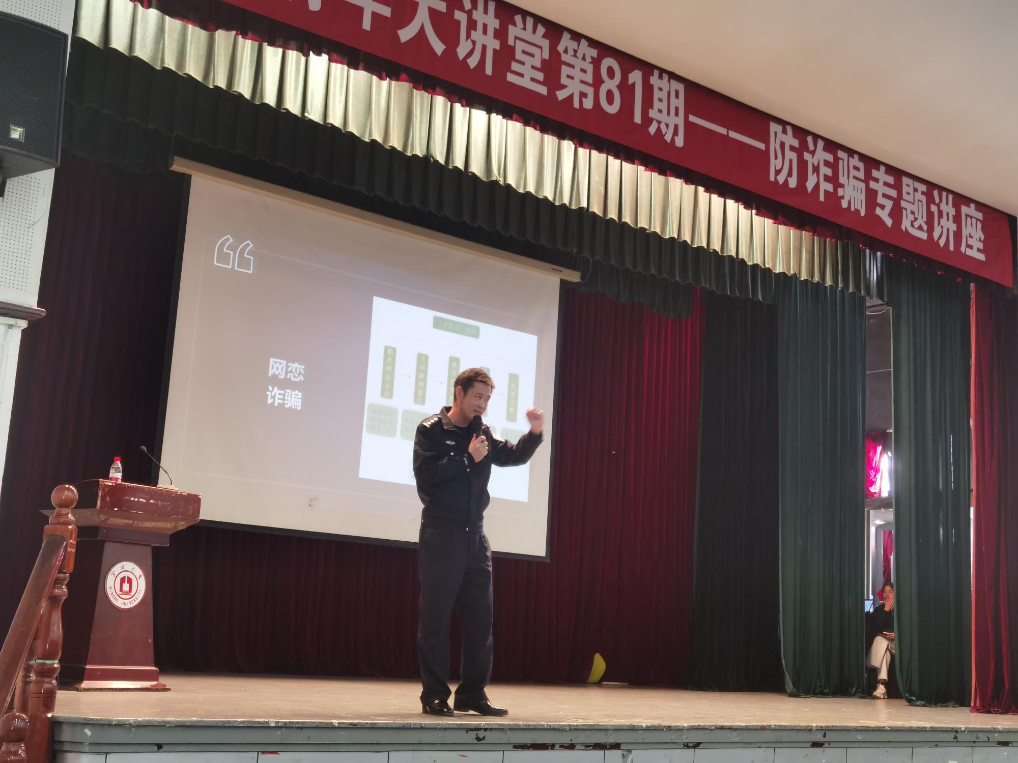 4月12日,51吃瓜网 于锦绣小剧场开展商院青年大讲堂第81期防诈专题讲座,本次活动由庄市派出所杨延飞警官主讲,51吃瓜网 二百余名学生参加本次活动。