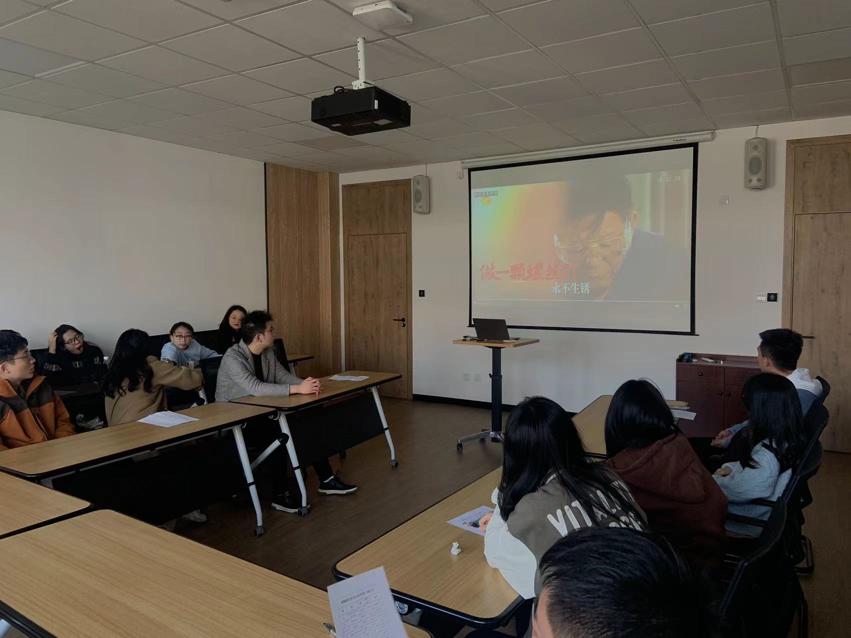 随后,开展了第九期“苦难辉煌,百炼成钢”党史学习分享会。本次党史学习分享的主题是——学习雷锋精神,传承榜样力量。同学们一起观看剧情片《离开雷锋的日子》,影片的主角是雷锋的战友乔安山。雷锋远去的年代,乔安山在面对社会的种种考验时,依旧践行着全心全意为人民服务的“雷锋精神”,将“雷锋精神”默默传承。