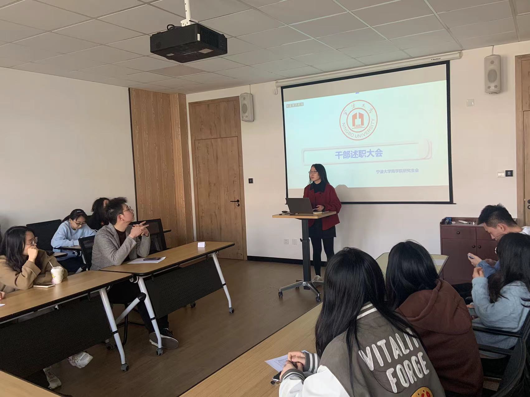 首先,开展学生干部述职大会。主席团成员张钰丽对上学期工作进行了总结,并就这个学期的重点工作进行了布置。随后各个部门轮流开展工作总结,并分享上学期的工作收获、感想体会和对不足之处的改进。同学们轮流上台发言,反响热烈。